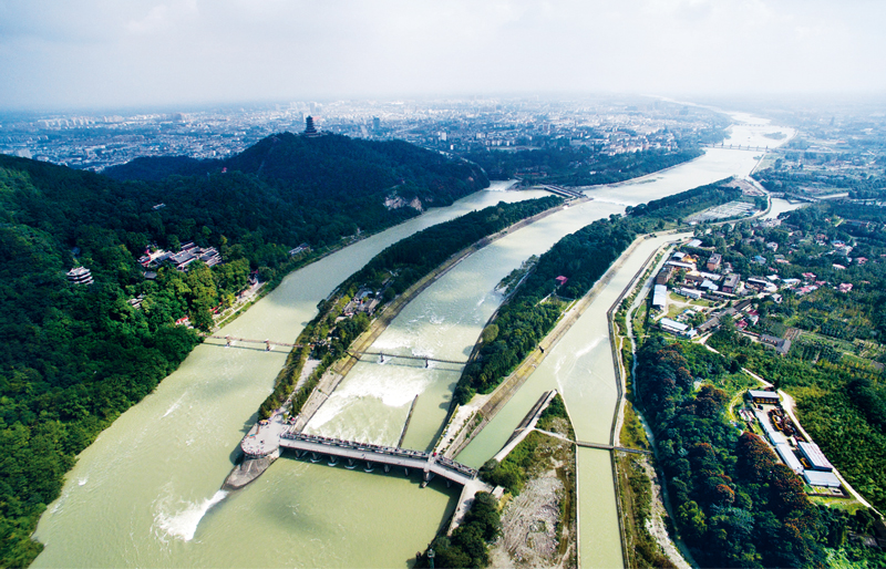 都江堰水利工程位于四川成都,始建于公元前3世紀(jì),以“乘勢(shì)利導(dǎo)、因時(shí)制宜”和“深淘灘、低作堰”等技術(shù)特點(diǎn)著稱,是中國古代勞動(dòng)人民勤勞、勇敢、智慧的創(chuàng)造(資料照片)。 新華社發(fā)